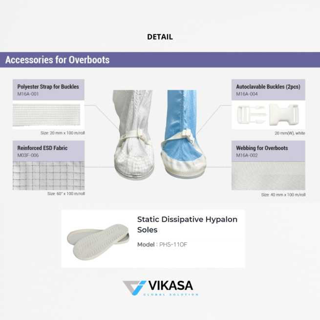 ACCESSORIES FOR OVERBOOTS POLYESTER STRAP FOR BUCKLES, ESD FABRIC, AUTOCLAVEABLE BUCKLES (2PCS), WEBBING FOR OVERBOOTS, STATIC DISSIPATIVE HYPALON SOLES